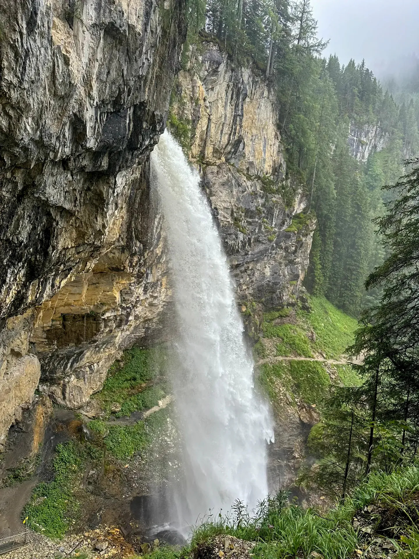 Above the waterfall, there is a very nice viewing platform. From there, it's about a 150-meter descent down the stairs to reach the waterfall itself. If you'd like to spend more time in the area, you can also take a short circular walk through the forest, which takes roughly an hour.